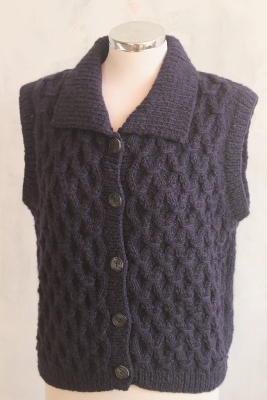 Pure wool hand knitted natural button cable knit sleeveless tank