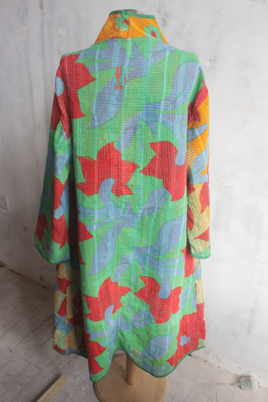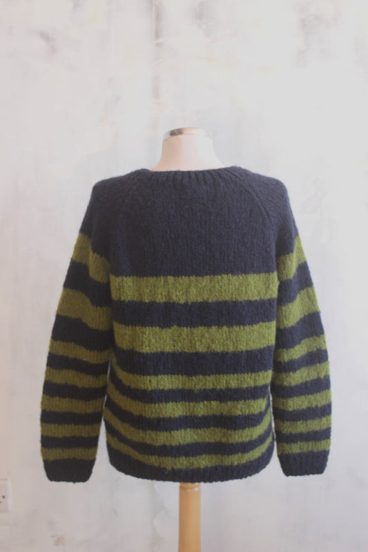 Pure wool hand knitted apple green ovesized V-neck jumper