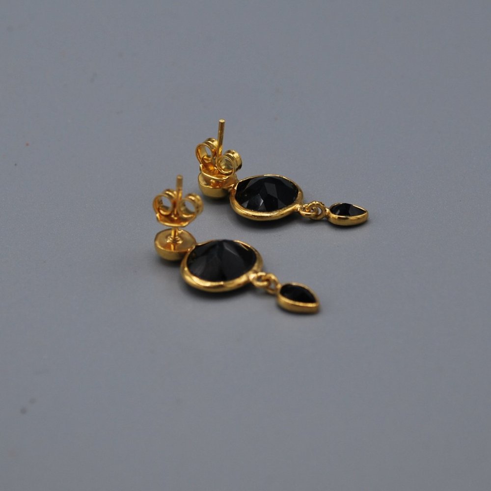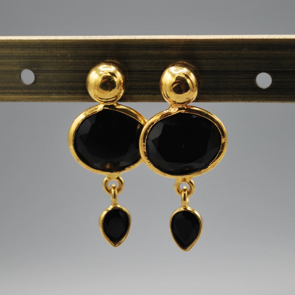 Gold stud, oval gem with tiny teardrop set in 18ct gold vermeil