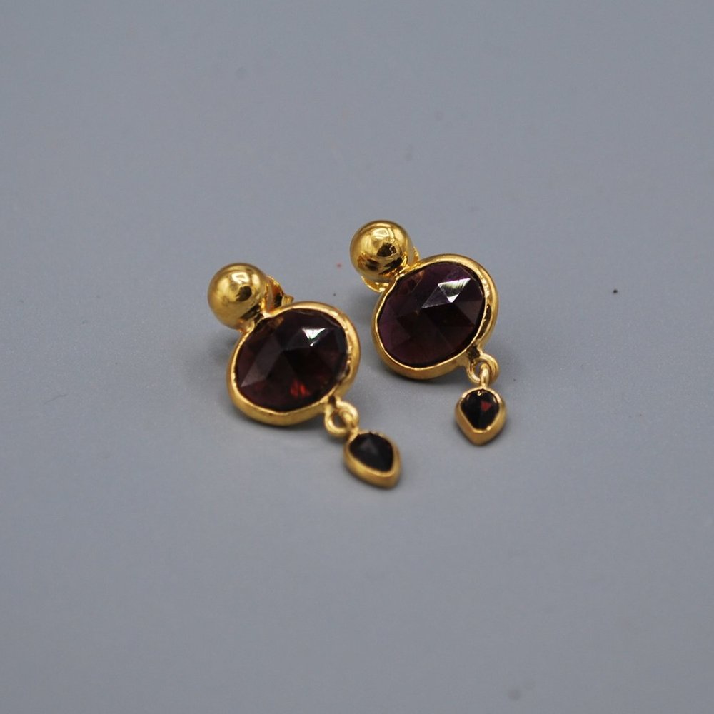 Gold stud, oval gem with tiny teardrop set in 18ct gold vermeil.
