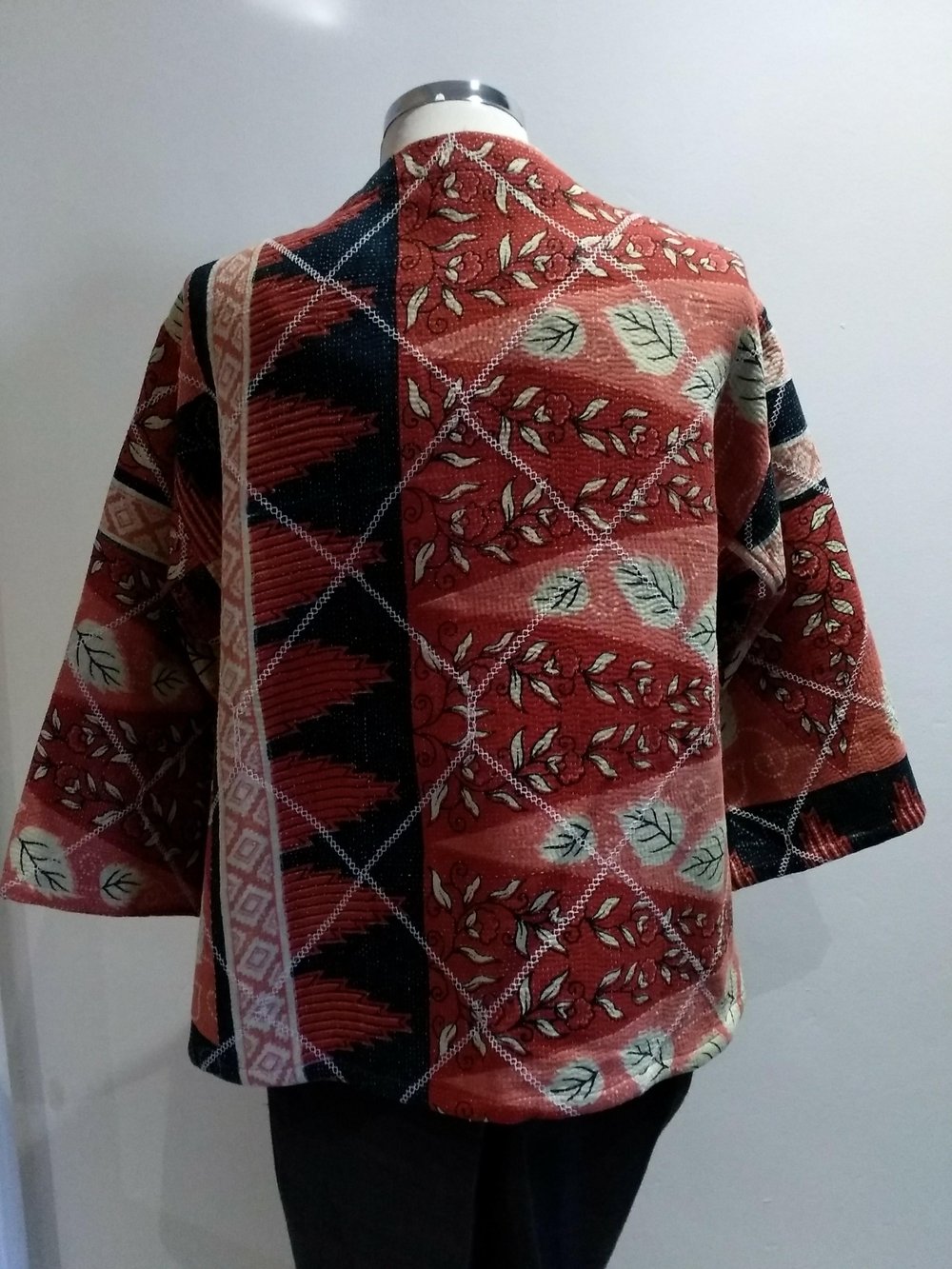 Jaadu Boutique's kantha stitch jackets are made from pure cotton vintage sari offcuts. Recycling fabric is a sure way to ensure a circular supply chain within the fashion industry, and makes each piece a unique one-off.