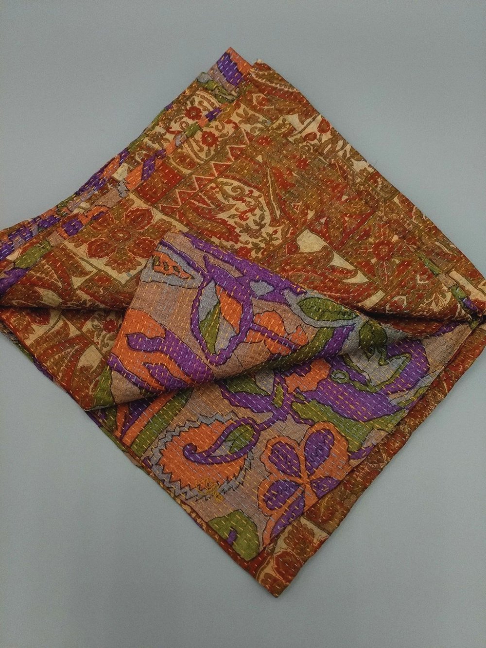 Kantha stitch silk scarves made from vintage saris.