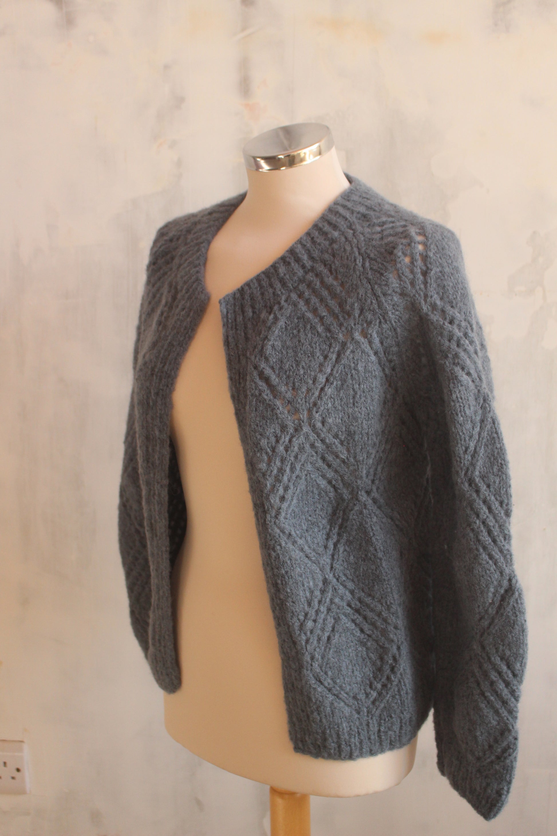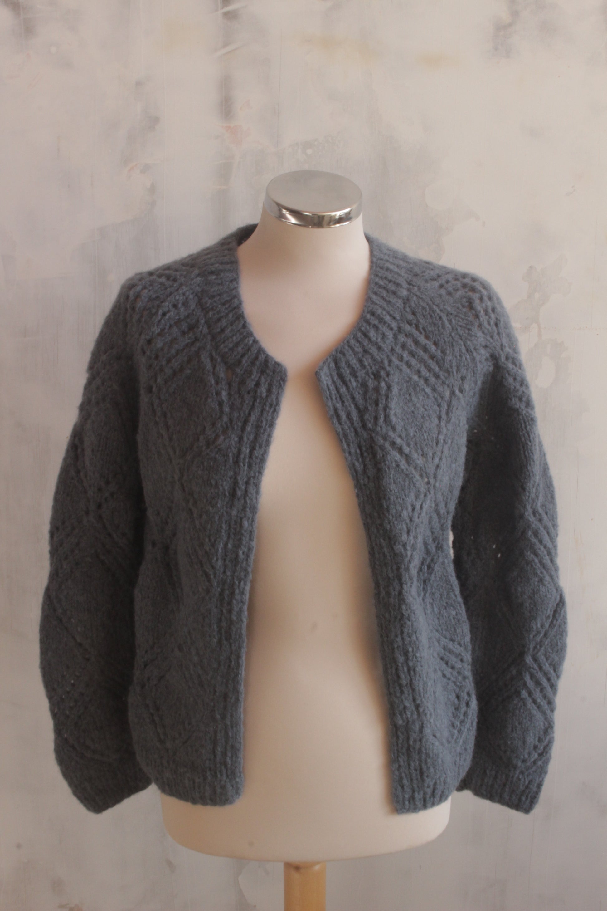 Pure wool soft French blue hand knitted cardigan